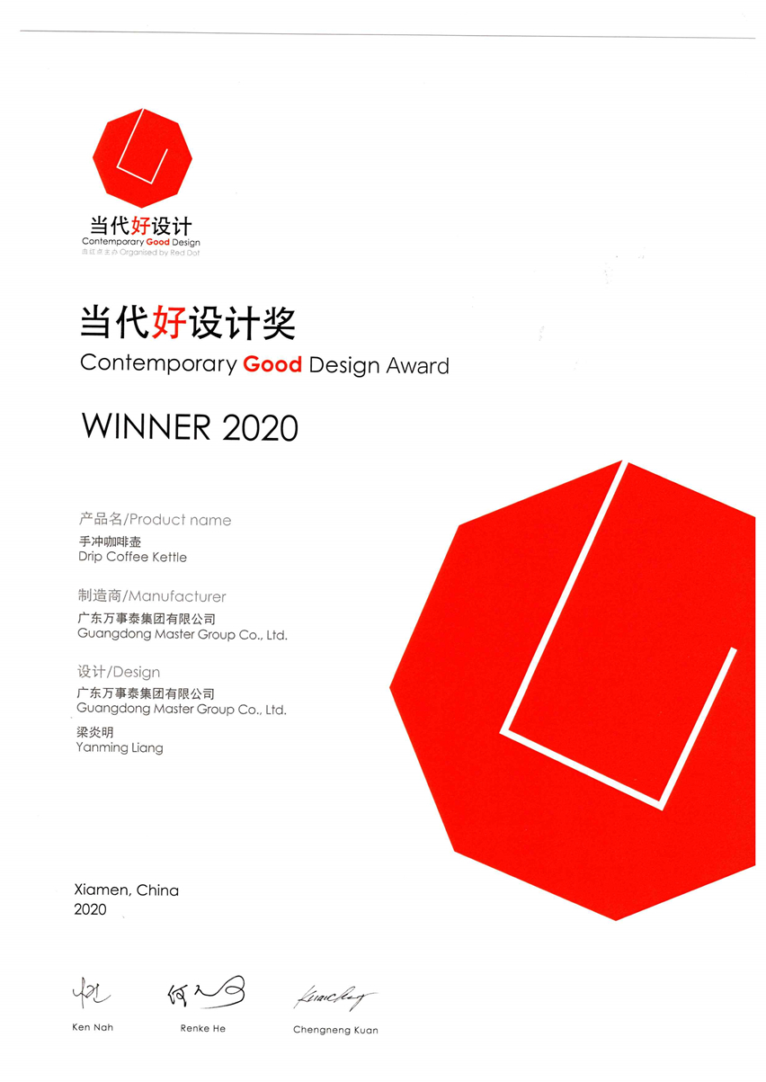 近日,2020年当代好设计奖评选结果揭晓,万事泰集团水平系列锅具、手冲咖啡壶因卓越的创新设计同时荣获“2020年当代好设计奖”。此次脱颖而出的万事泰两大产品被授予荣誉,是对万事泰集团杰出的设计成就最大的肯定。