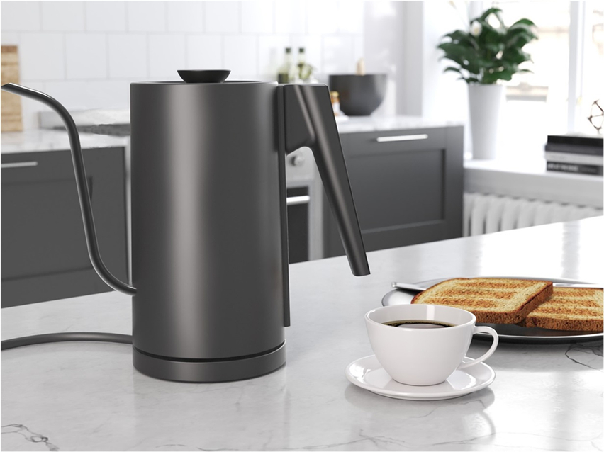 同获殊荣的手冲咖啡壶新颖独特、色彩多样,流畅的线条感设计搭配亚光外色更显典雅,如高雅端庄的“贵妇”。“手冲咖啡壶+智能煮水壶”的一体化设计,智能化的精准控温与保温,让咖啡粉能更均匀地接受同一种温度的萃取。从功能、材质与整体设计上不断突破和创新的手冲咖啡壶,不仅节约冲泡咖啡的时间,还让咖啡品质更有保证。