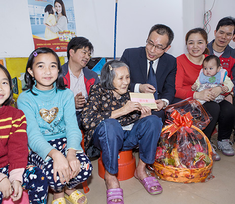 近日,万事泰集团常务副总裁刘炳耀、党支部书记陈永锦、工会主席梁洪光等一行到集团困难员工家中慰问,给他们送去了集团的关怀和新春的祝福。