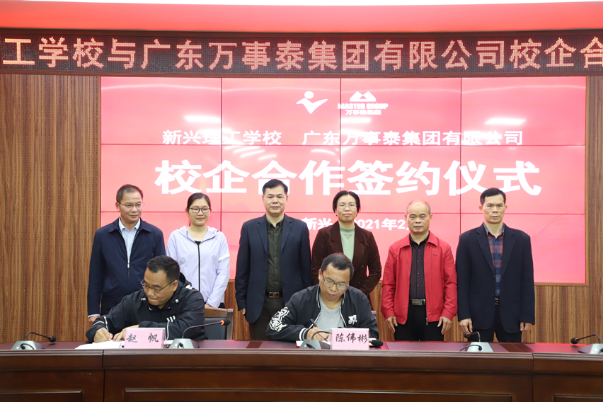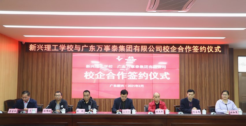 集团讯 2月22日上午,万事泰集团与新兴理工学校校企合作签约仪式在新兴理工学校学术报告厅顺利举行。新兴县教育局党组成员、成教办主任黄卫华先生,新兴理工学校校长伍松坚、副校长陈伟彬、学校部分中高层领导、老师及学生出席了仪式,万事泰集团人力资源中心副总监赵帆、行政部经理陈永锦、企业文化部经理欧淑慧等集团领导参加了本次仪式。仪式由新兴理工学校副校长梁金权主持。