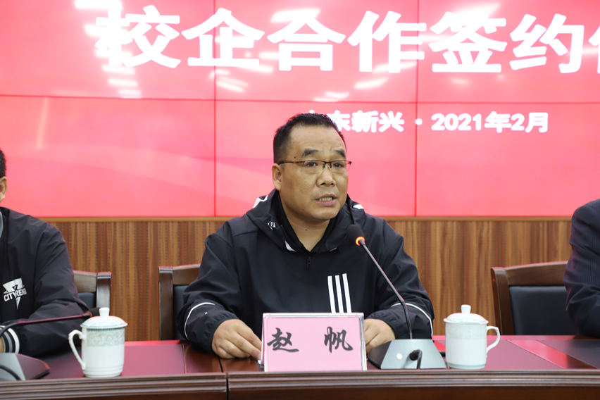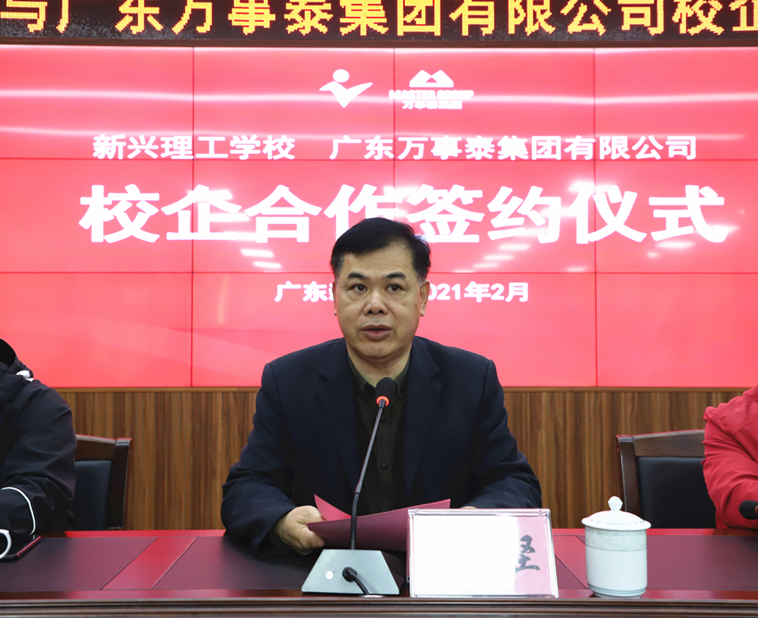 万事泰人力资源中心副总监赵帆代表万事泰集团向新兴理工学校领导、老师及同学们表示诚挚的问候和真诚的感谢,向与会嘉宾详细介绍了万事泰集团生产经营、智能制造、人才战略等情况。他表示,万事泰集团一直以来非常注重人才培养及团队建设,定制了系列人力资源策略,为每一位员工提供理想的事业舞台。他还提到,万事泰集团目前正处于全面搭建智能制造新平台的关键时期,万事泰即将全面应用信息化系统、智能制造自动化生产线,这意味着全部以操控系统来进行生产运作,也意味着万事泰员工往后的发展空间非常大,发展机会更多。