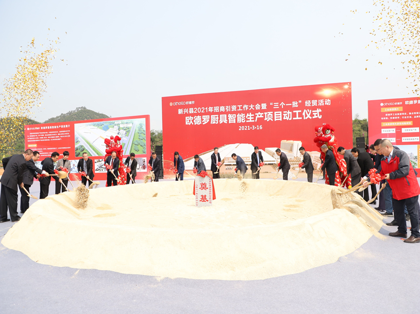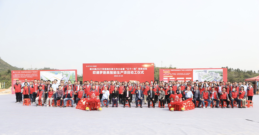 集团讯 3月16日上午,由新兴县人民政府主办,新成工业园、广东欧德罗厨具股份有限公司承办的欧德罗厨具智能生产项目动工奠基仪式在新成工业园欧德罗智能制造产业园内隆重举行。云浮市副市长施东红,市商务局局长陈金进,新兴县委书记王巍,县委副书记、县长陈哲江等机关单位领导出席仪式共襄盛举。广东欧德罗厨具股份有限公司董事长梁桂泉、常务副总裁刘炳耀等公司领导及欧德罗公司人员代表约150人参加了仪式。仪式由新兴县政府副县长、顺德对口帮扶新兴指挥部副总指挥岑树德主持。