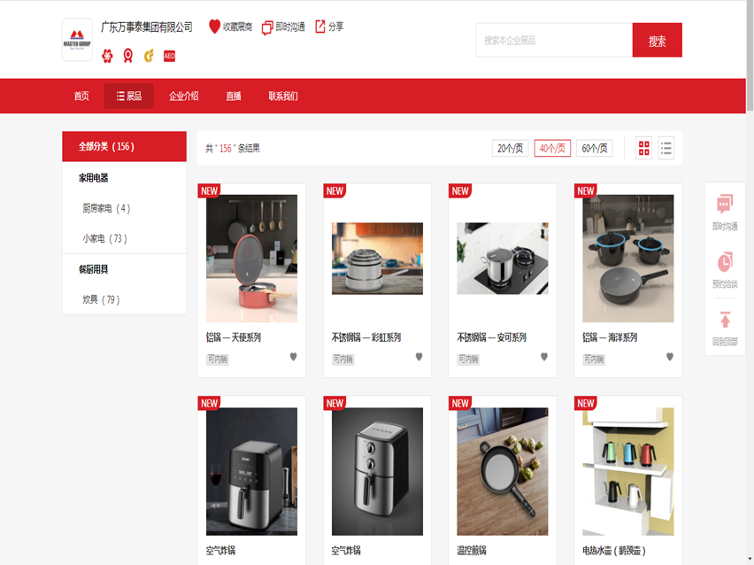 面对以国内大循环为主体、国内国际双循环相互促进的新发展格局,万事泰作为典型的外贸企业,逐步提升企业的内销“功力”,根据国内外不同市场需求做出了相应调整。万事泰本季度线上展示的新产品,除海外市场热销的产品外,还有面向国内市场的新品,给产品加上“可内销”的标签,从而吸引更多国内采购商交流洽谈。