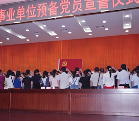 新党员在主席台上的党旗前,举起右手,在领誓人的领誓下宣读入党誓言。“我志愿加入中国共产党,拥护党的纲领,遵守党的章程,履行党员义务……”会场响起整齐响亮的誓言。