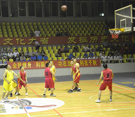 开幕式后进行了本次篮球赛的首场比赛,由天堂镇代表队对阵河头镇代表队。